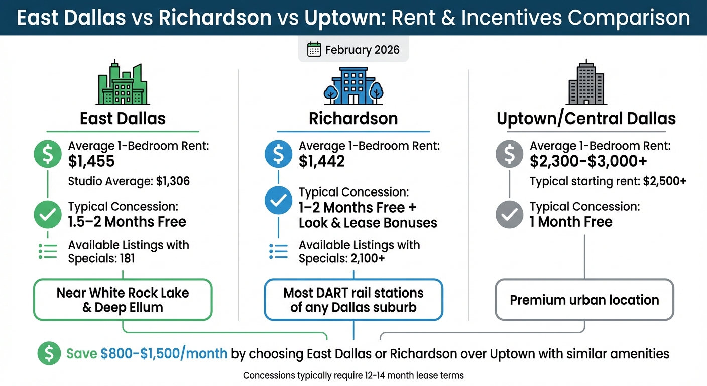 East Dallas vs Richardson vs Uptown Dallas Apartment Rent Comparison February 2026