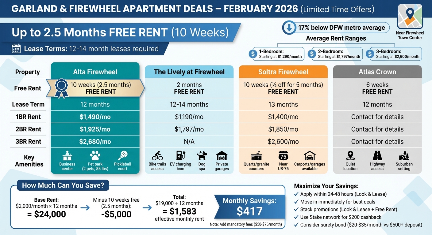 Garland & Firewheel Apartment Deals: Rent Prices, Savings & Property Comparison February 2026