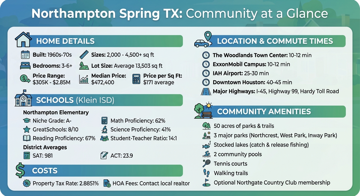 Northampton in Spring, TX, is an established community known for its spacious lots, mature trees, and family-friendly amenities. Developed in the 1960s, it offers a peaceful suburban vibe, proximity to The Woodlands, and access to top-rated Klein ISD schools. Here’s what you need to know: