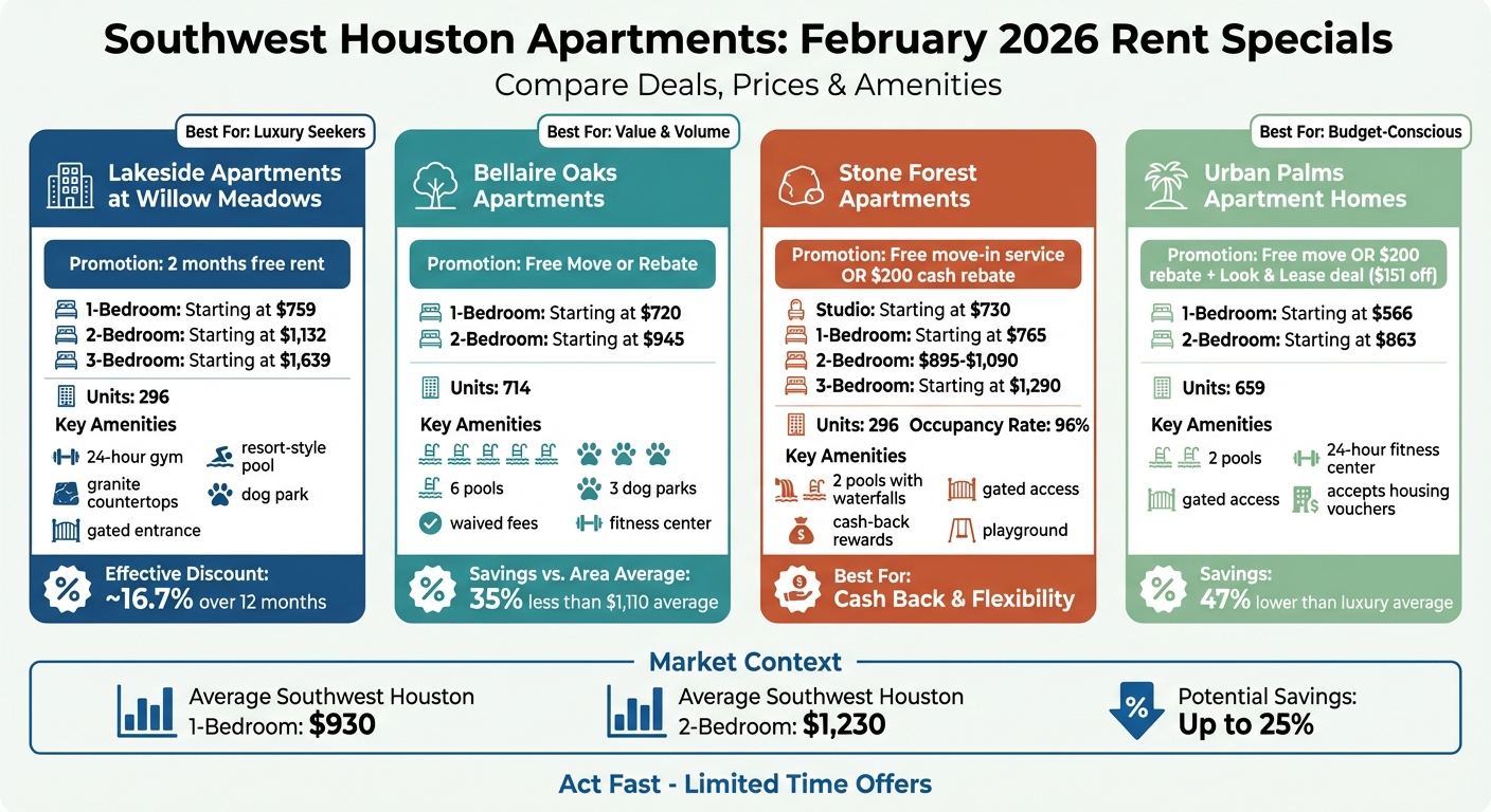 Southwest Houston Apartment Rent Specials Comparison February 2026