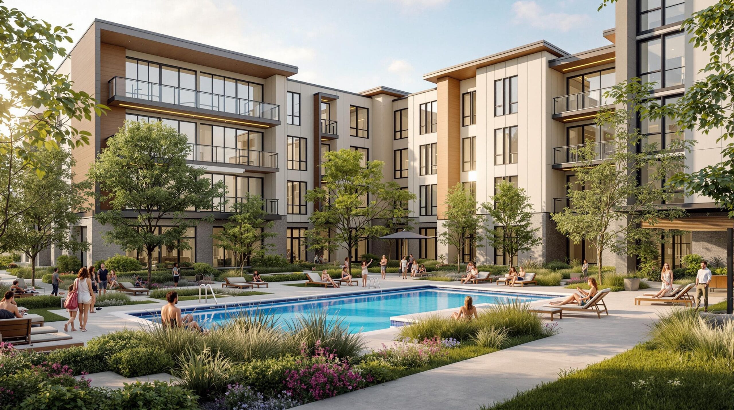 - The Link: Pet-friendly 1-3 bedroom apartments ($966–$2,013) with pools, fitness center, and outdoor social spaces.